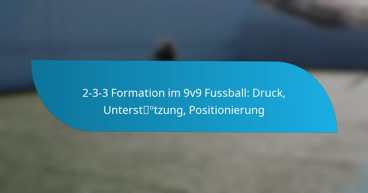 Die 2-3-3-Formation im 9v9-Fussball ist ein taktisches Setup, das zwei Verteidiger, drei Mittelfeldspieler und drei Stürmer umfasst und ein Gleichgewicht zwischen offensivem Spiel und Kontrolle im Mittelfeld schafft. Diese Formation betont den koordinierten Druck auf den Ballträger und die Bedeutung der sofortigen Unterstützung, um den Ballbesitz zurückzugewinnen. Effektive Teamarbeit und strategische Positionierung sind entscheidend, damit die Spieler Fluidität und Kohäsion aufrechterhalten können, während sie sowohl offensive als auch defensive Strategien umsetzen.