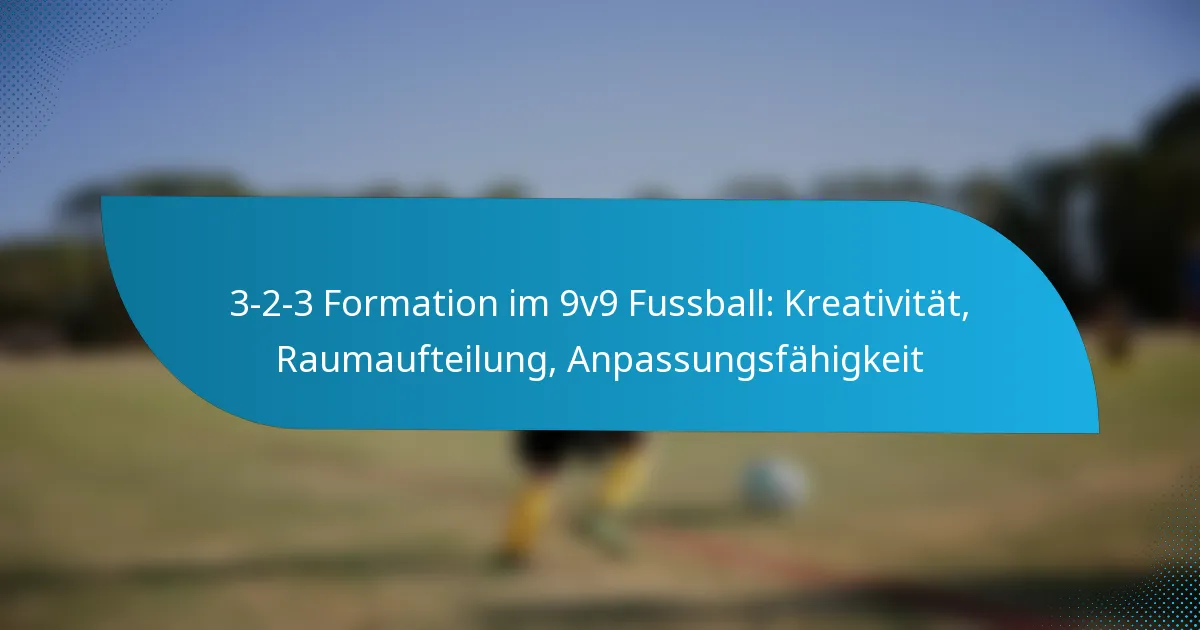 Die 3-2-3-Formation im 9v9-Fussball ist ein taktisches Setup, das drei Verteidiger, zwei Mittelfeldspieler und drei Stürmer umfasst und dabei offensiven Flair mit defensiver Solidität ausbalanciert. Diese Anordnung fördert Kreativität und effektive Raumnutzung, wodurch Teams die Breite und Tiefe ausnutzen können, während innovatives Spiel gefördert wird. Durch die Förderung dynamischer Positionierung und flüssiger Bewegungen verbessert die 3-2-3-Formation sowohl offensive Möglichkeiten als auch die defensive Organisation.