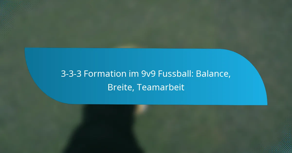 Die 3-3-3-Formation im 9v9-Fussball ist ein taktisches Setup, das drei Verteidiger, drei Mittelfeldspieler und drei Stürmer umfasst und dabei Balance, Breite und Teamarbeit betont. Durch die gleichmässige Verteilung der Spieler auf dem Feld fördert diese Formation eine effektive Kommunikation und stellt sicher, dass alle Bereiche während des Spiels abgedeckt sind. Ihr strategischer Einsatz von Breite verbessert die Ballbewegung und schafft Angriffsgelegenheiten, was sie zu einer beeindruckenden Wahl für Teams macht, die sowohl defensive Stabilität als auch offensiven Druck aufrechterhalten möchten.